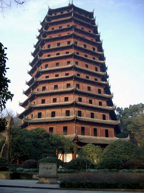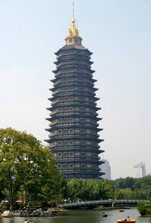 13-story Tianning Pagoda is the tallest pagoda in the world, standing at 504.6 feet. Very tough wood, brought in from Burma, and 75 tons of brass and gold were used in the construction of this incredible structure.