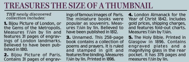 These thumbnail-sized publications – which are to be sold at auction after they were discovered in a house clearance – include The Bible and the London Almanack from 1842.