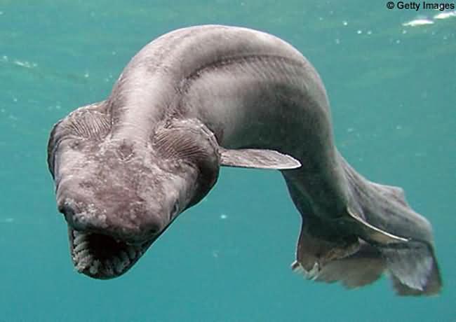 Real. A species of shark rarely seen alive because its natural habitat is 600 metres (2,000 ft) or more under the sea was captured on film by staff at a Japanese marine park.